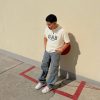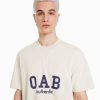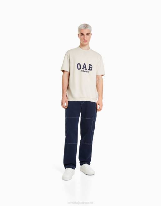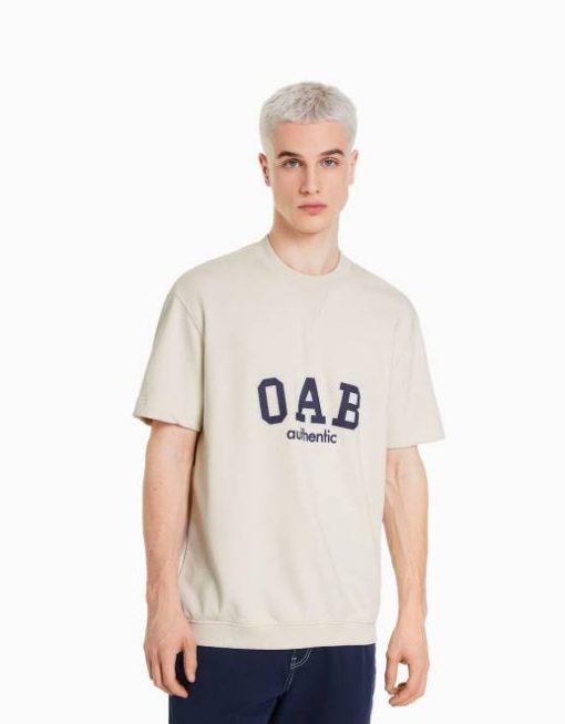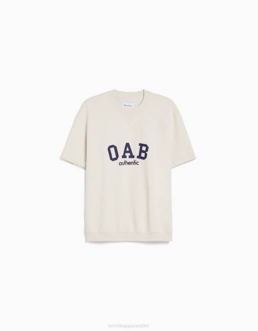 男性 Bershka 半袖プラッシュTシャツ バーシティプリント 60442765 衣類 オフホワイト