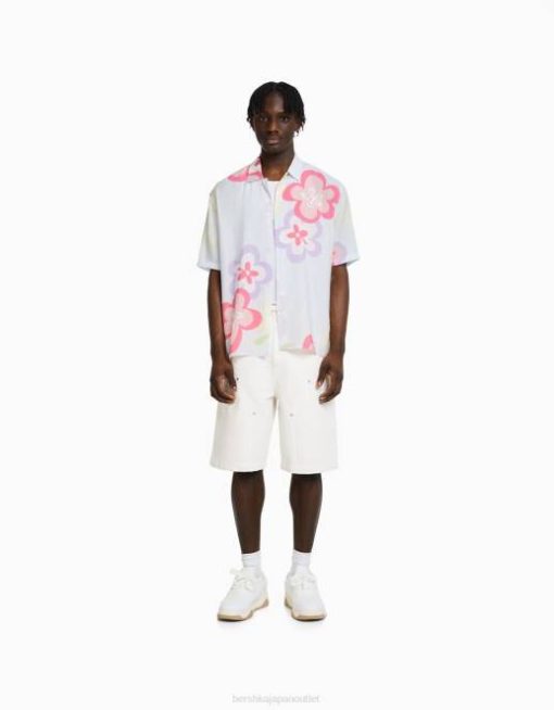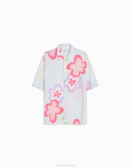 男性 Bershka 半袖花柄シャツ 60442869 衣類 ライトブルー