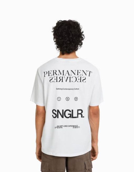 男性 Bershka 半袖 リラックスフィット プリント Tシャツ 60442640 衣類 他の