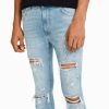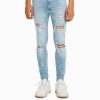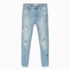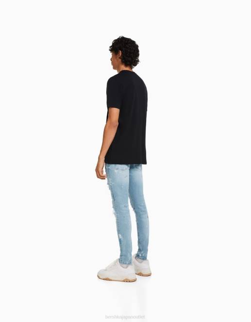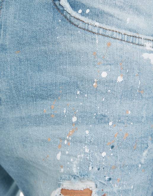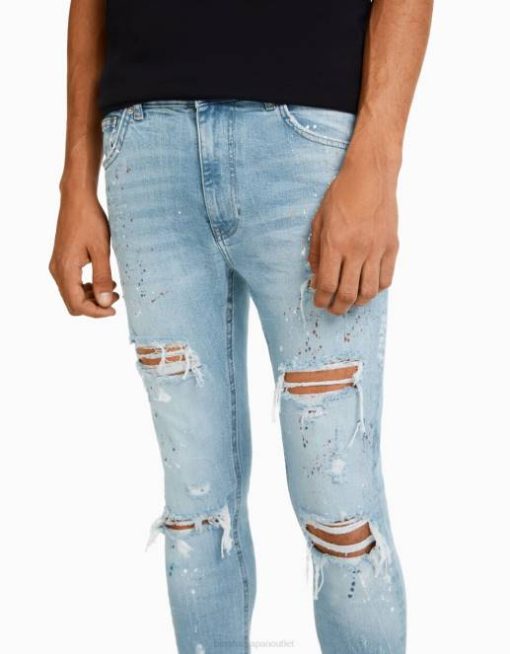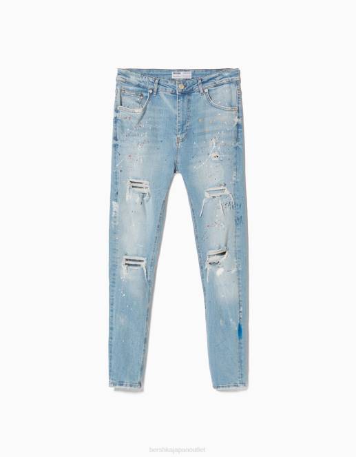 男性 Bershka 破れたペイント スプラッター スキニー ジーンズ 60443170 衣類 ライトブルー