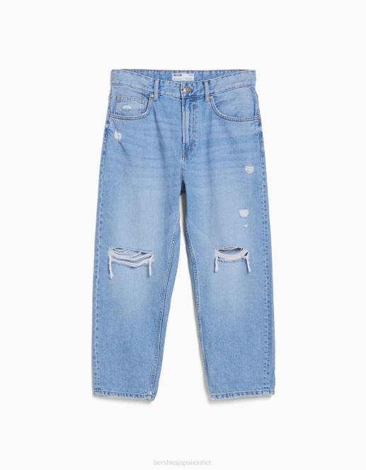 男性 Bershka 破れのあるルーズフィット ジーンズ 60443207 衣類 ライトブルー