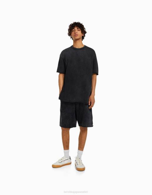 男性 Bershka 色あせたフラシ天バミューダショーツ 60443361 衣類 黒