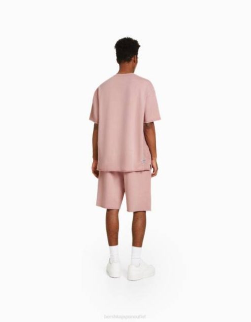 男性 Bershka 色あせた半袖Tシャツ 60442646 衣類 ピンク