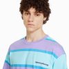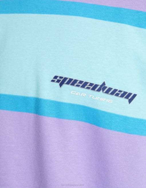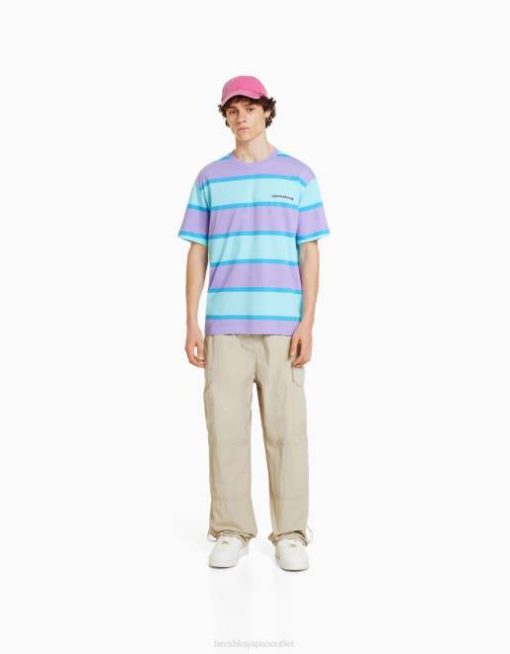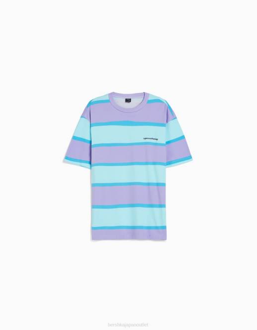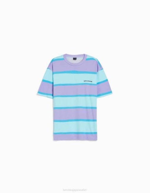 男性 Bershka 90年代 ストライプ オーバーサイズ 半袖 Tシャツ 60442642 衣類 バイオレット