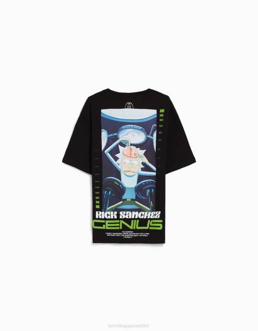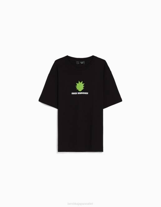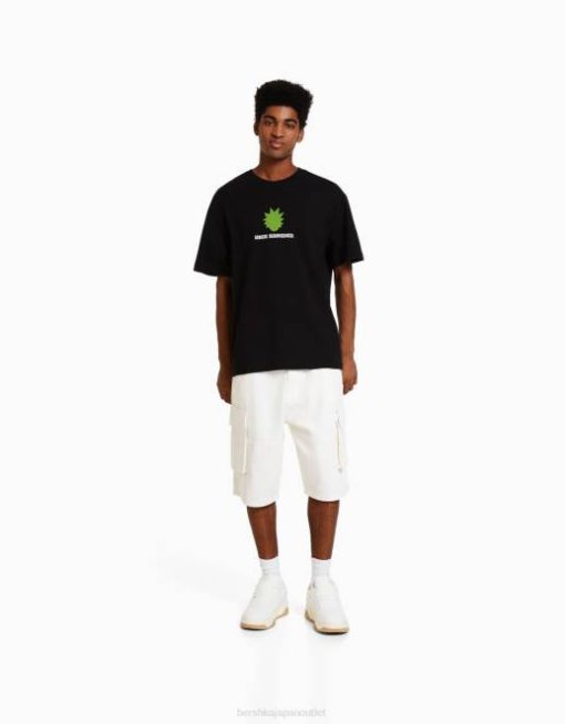 男性 Bershka RICK & MORTY プリント ボクシーフィット 半袖 T シャツ 60442857 衣類 黒